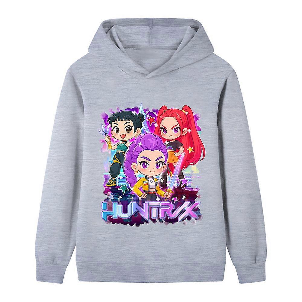 Grey- Witch Hunting Group Printing Pattern Medium And Large Children Boys And Girls Hoodie Sweater B12 22