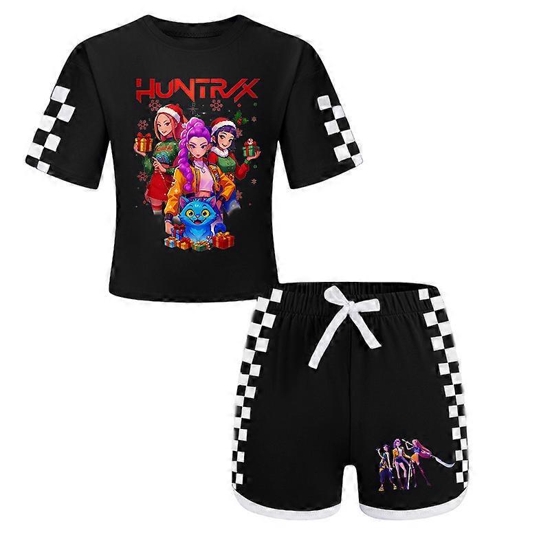 Flower Pattern 2- Black- Witch Hunt Boys And Girls Children's T-Shirt + Shorts Printed Sports Pajamas Children's Set