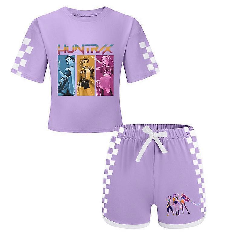 Flower Type 2-Purple- Witch Hunt Boys And Girls Children's T-Shirt + Shorts Printed Sports Pajamas Children's Set
