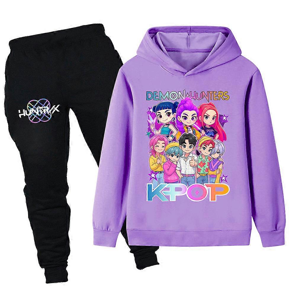 Purple- Witch Hunt Printed Children's Set, Kids' Hoodie And Sweatshirt Set Pb1201