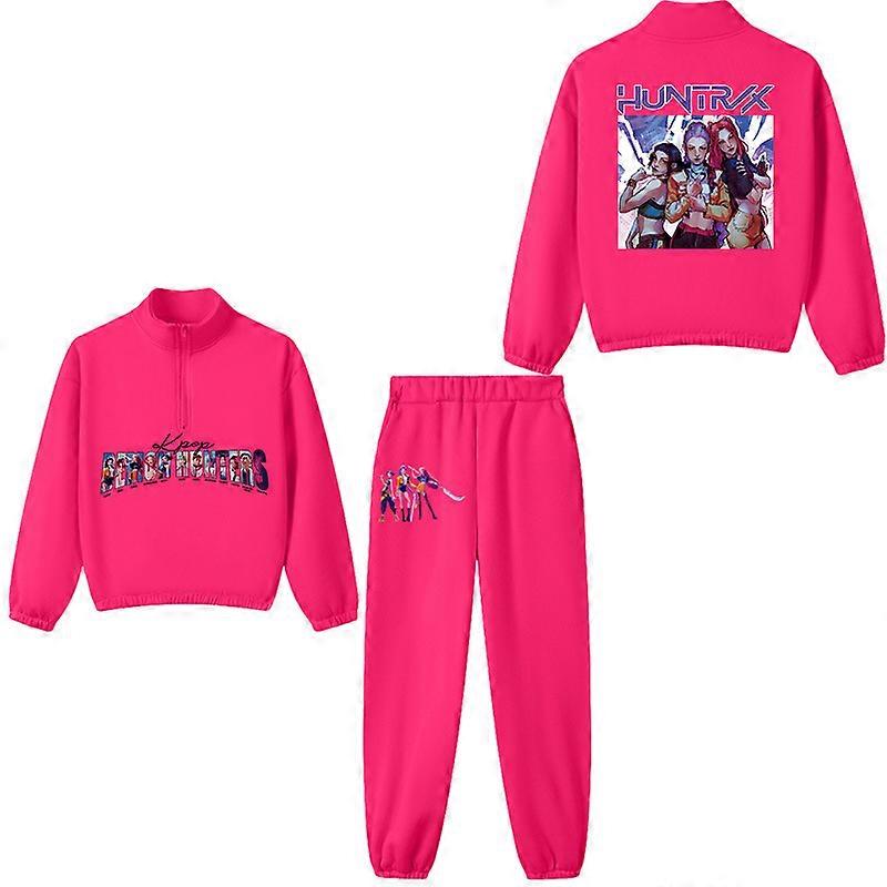 Rose Red- Witch Hunt Boys' And Girls' Stand-Up Collar Half-Zipper Hoodies + Long Pants Sportswear Fleece Casual Children's Sets