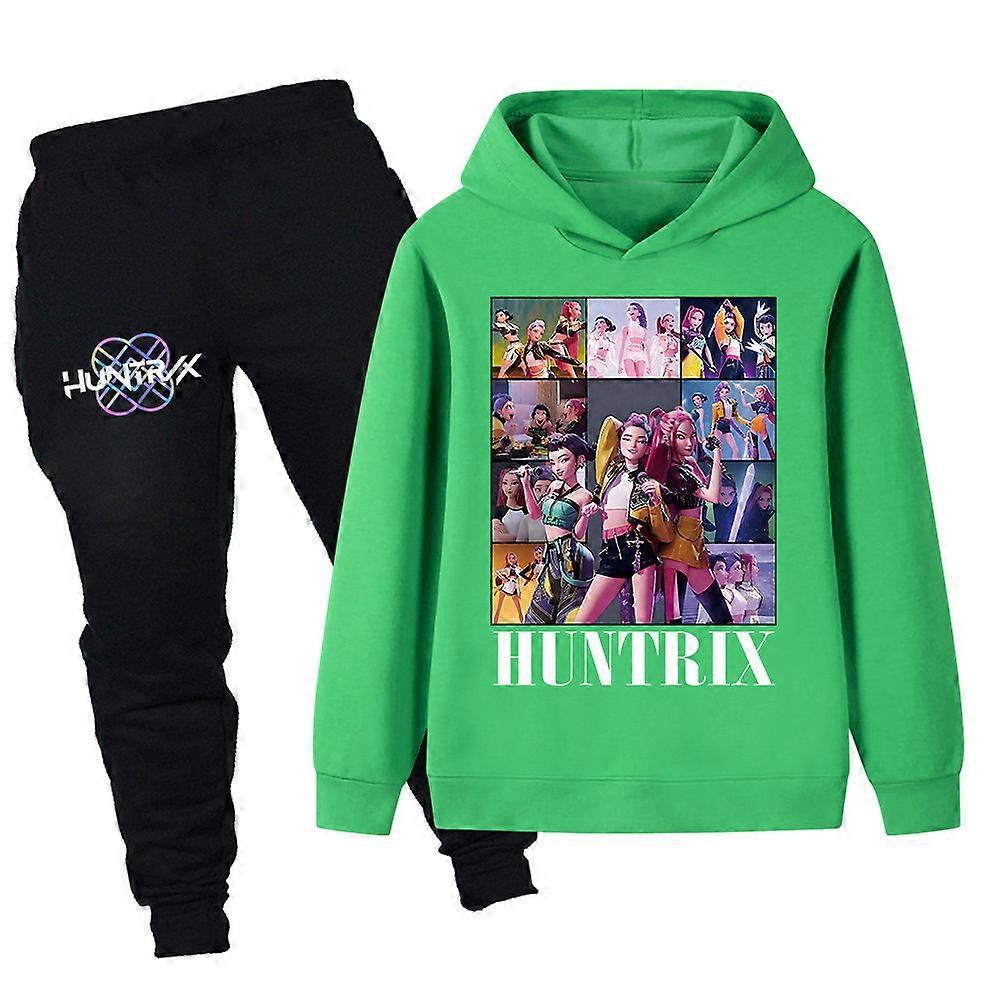 Green- Witch Hunt Printed Children's Set, Kids' Hoodie And Sweatshirt Set Pb1223