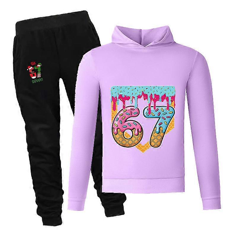 Set Purple-Boy's Boy's Hoodie Big Boy's Hoodie Sports Suit