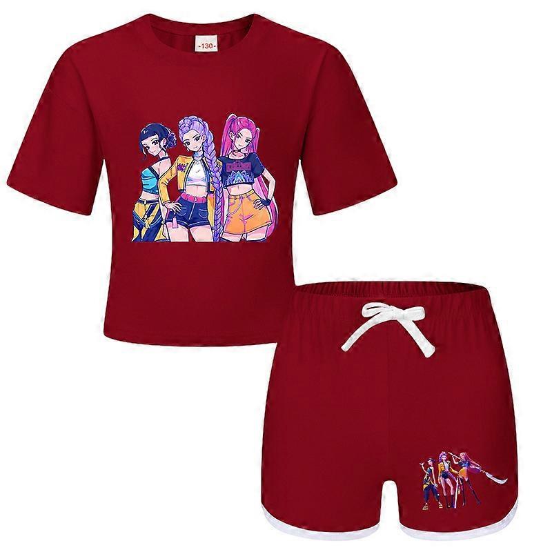 Dark Red- Witch Hunt Boys And Girls Children's T-Shirt + Shorts Printed Sports Pajamas Children's Set