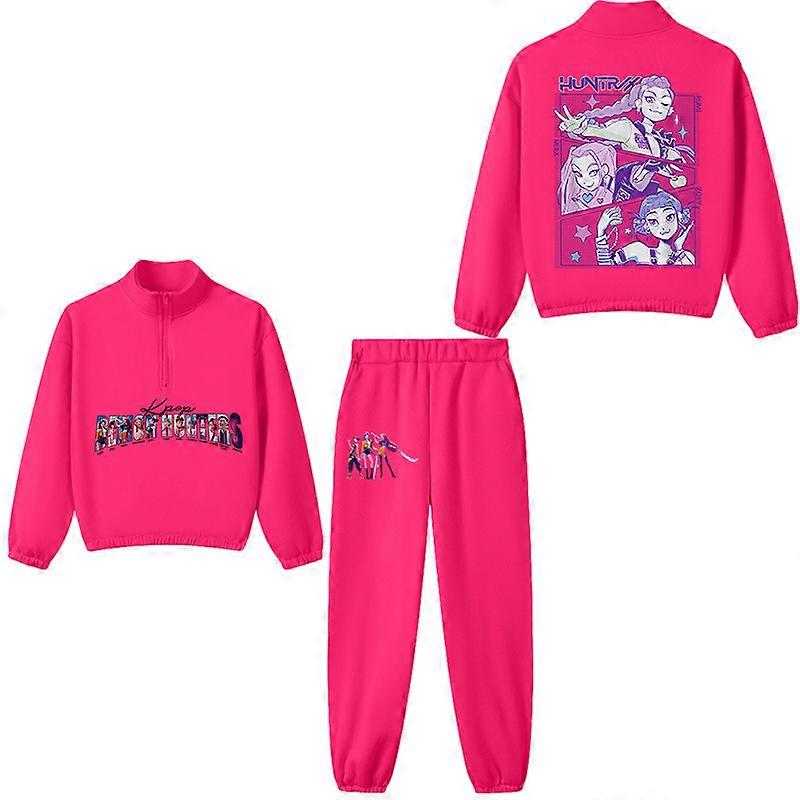 Rose Red- Witch Hunt Boys' And Girls' Stand-Up Collar Half-Zipper Hoodies + Long Pants Sportswear Fleece Casual Children's Sets