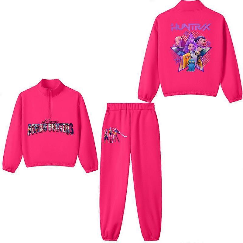 Rose Red- Witch Hunt Boys' And Girls' Stand-Up Collar Half-Zipper Hoodies + Long Pants Sportswear Fleece Casual Children's Sets