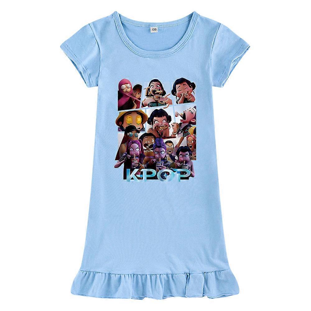 Light Blue-The Best-Selling K-Pop Witch Hunt Printed Girls' Dress, Ice Silk Sleeping Dress M1237