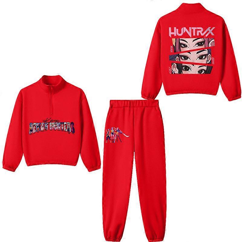 Red- Witch Hunter Boys And Girls Set Collar Half-Zip Sweat Trousers Sports Fleece Casual Children's Suit