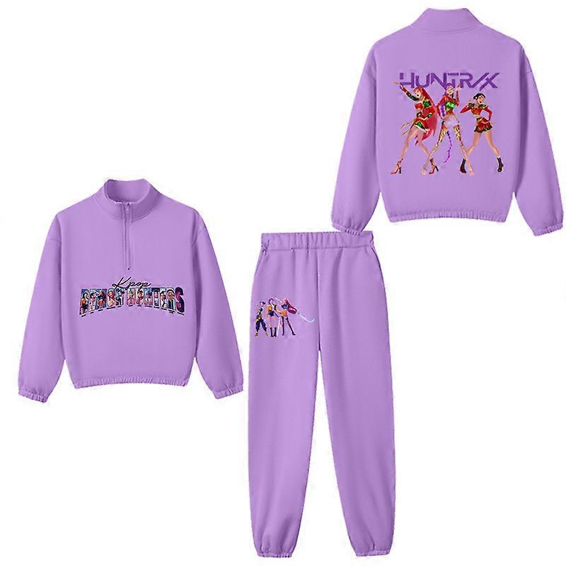 Purple- Witch Hunt Boys' And Girls' Stand-Up Collar Half-Zipper Hoodies + Long Pants Sportswear Fleece Casual Children's Sets