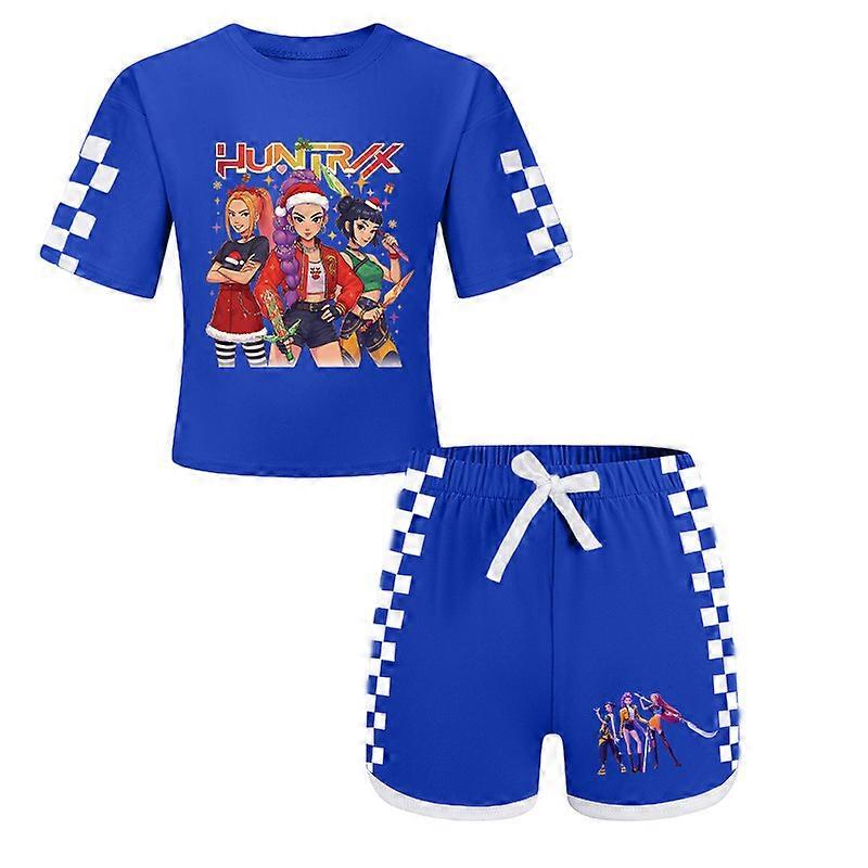 Pattern 2-Blue- Witch Hunt Boys And Girls Children's T-Shirt + Shorts Printed Sports Pajamas Children's Set