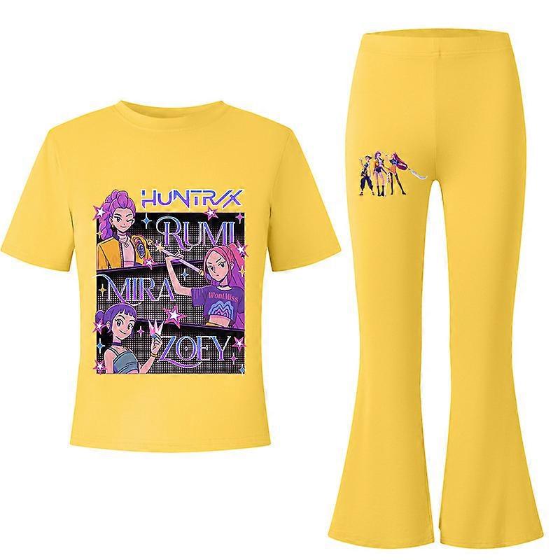 Flower Type 2-Yellow- Witch Hunter's Big Kids Summer Short-Sleeved T-Shirt + Flared Long Pants Fashionable Casual Set