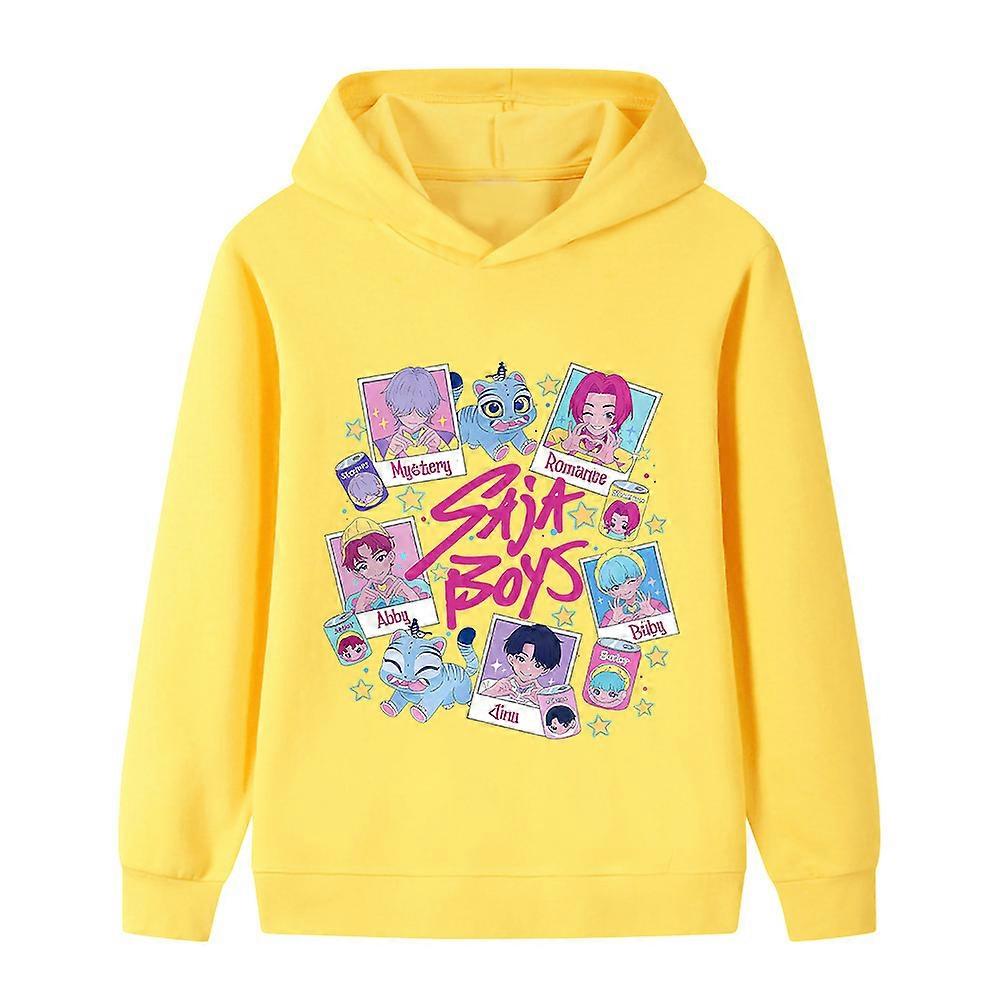 Yellow- Witch Hunt Print Pattern Big Kids Boys And Girls Hooded Sweatshirt B1206