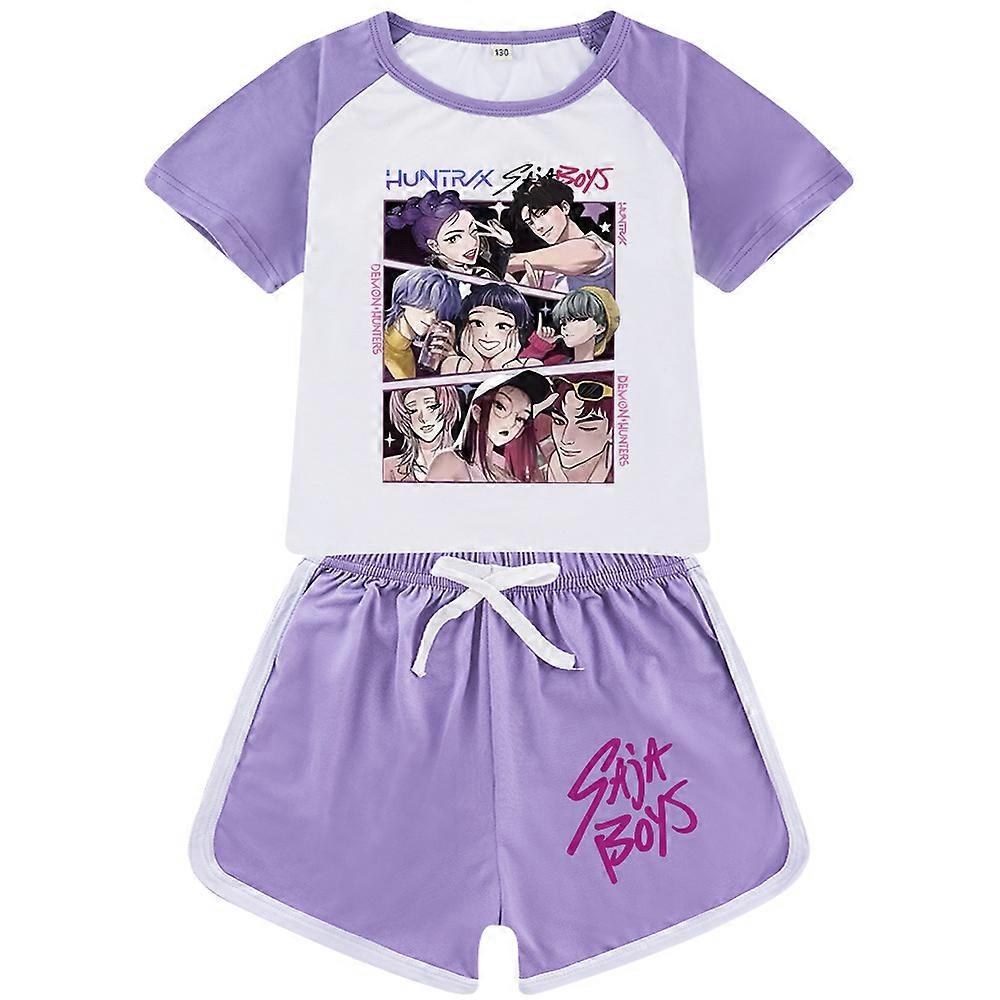 Purple-Hot-Selling Witch Hunt Printed Children's Short Home Wear Sportswear Set Qq1224