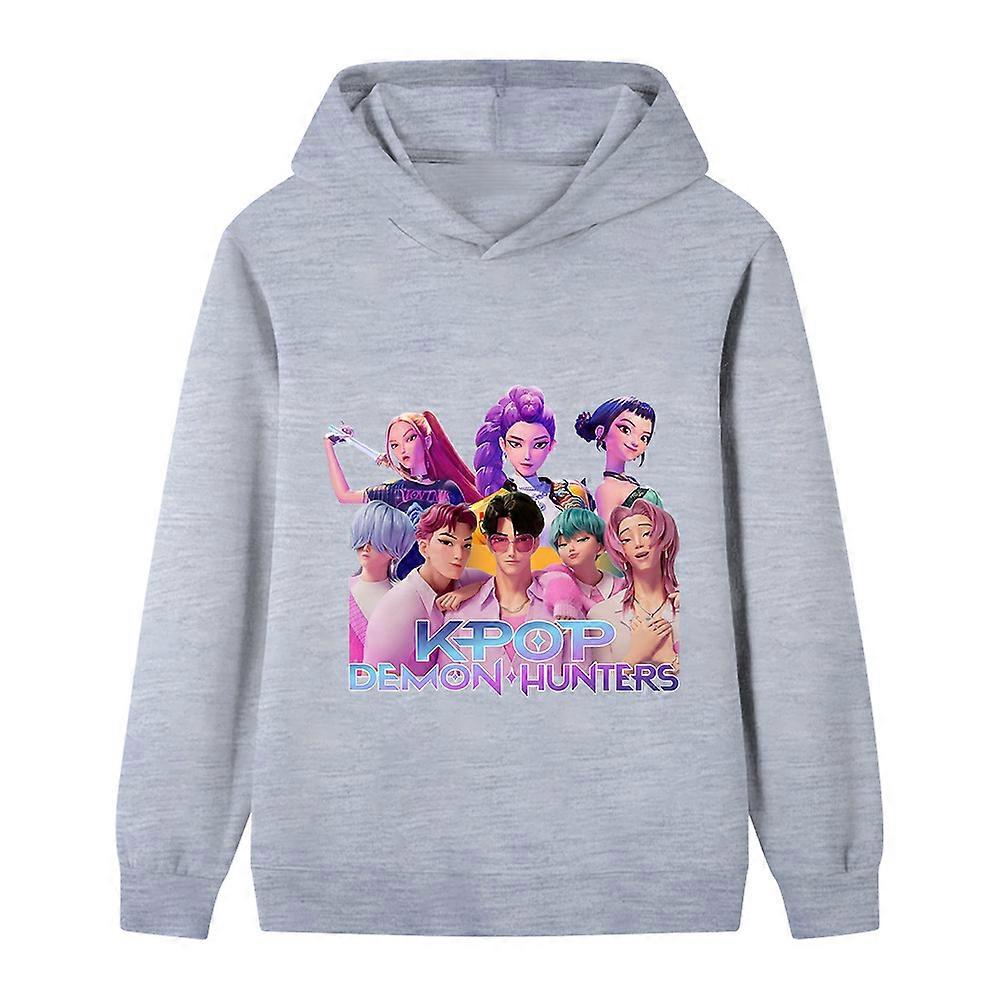 Grey- Witch Hunt Print Pattern Big Kids Boys And Girls Hooded Sweatshirt B1204