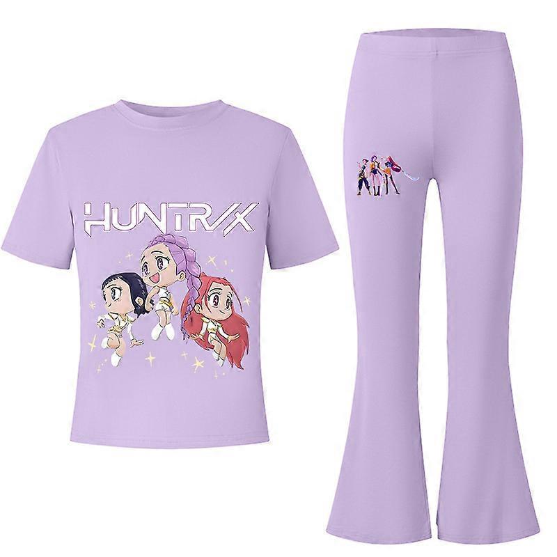 Flower Type 2-Purple- Witch Hunter's Big Kids Summer Short-Sleeved T-Shirt + Flared Long Pants Fashionable Casual Set