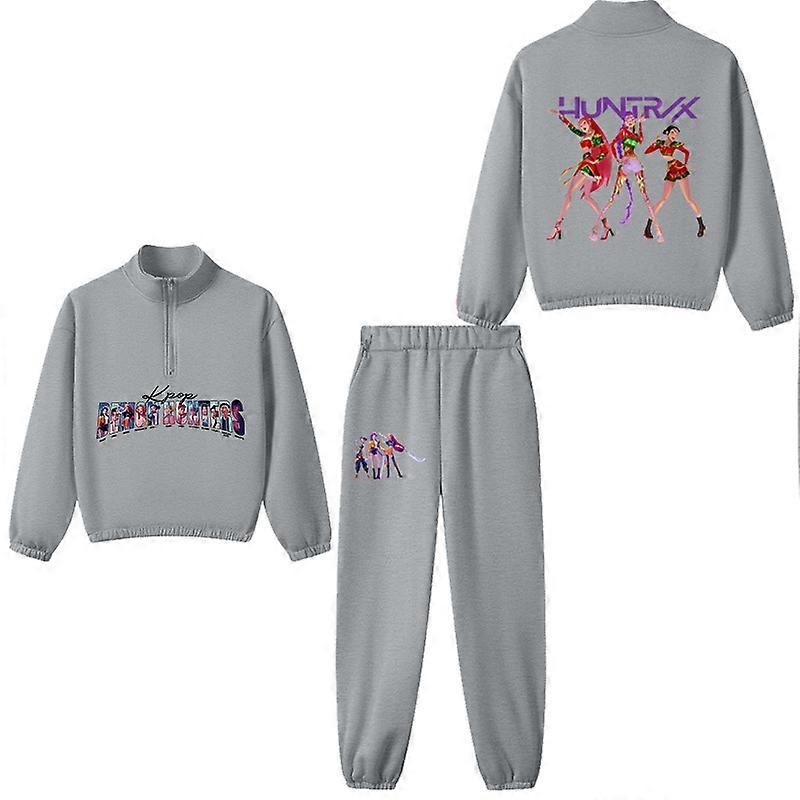 Grey- Witch Hunt Boys' And Girls' Stand-Up Collar Half-Zipper Hoodies + Long Pants Sportswear Fleece Casual Children's Sets