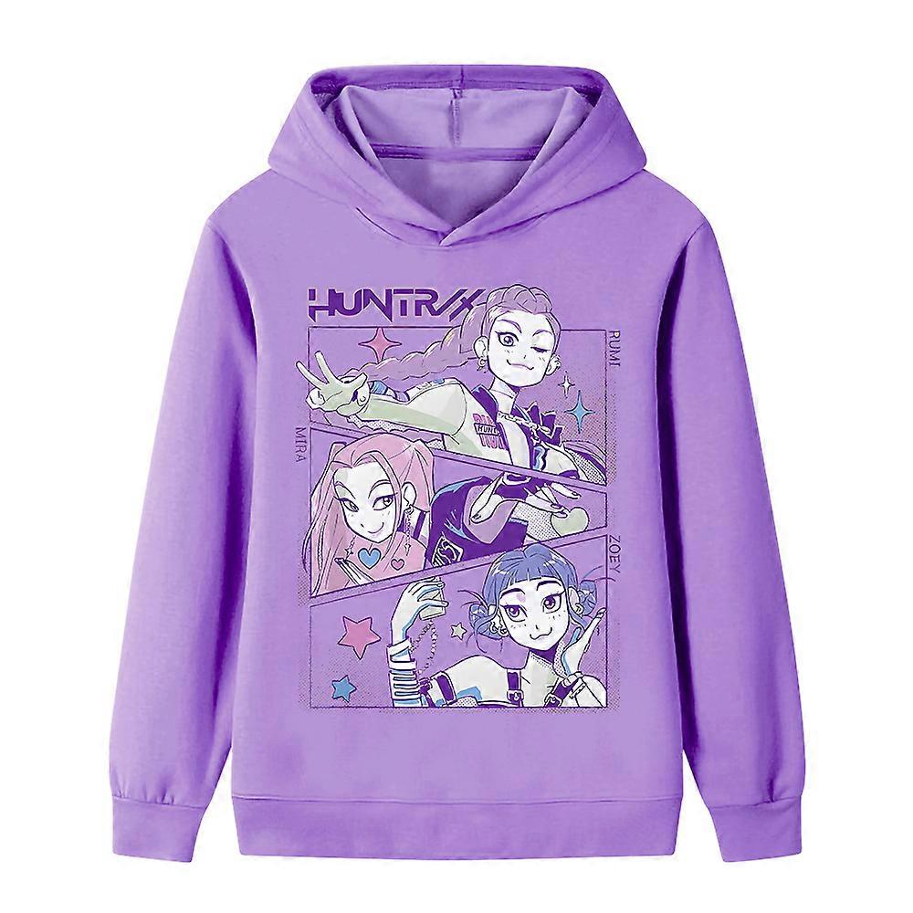 Purple- Witch Hunting Group Printed Pattern Large Children Boys And Girls Hoodie Sweatshirt B1196