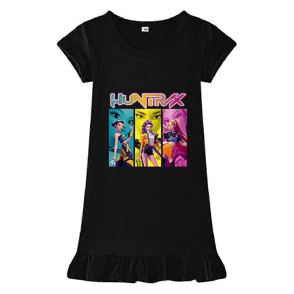 Black-The Best-Selling K-Pop Witch Hunt Printed Girls' Dress, Ice Silk Sleeping Dress M1236