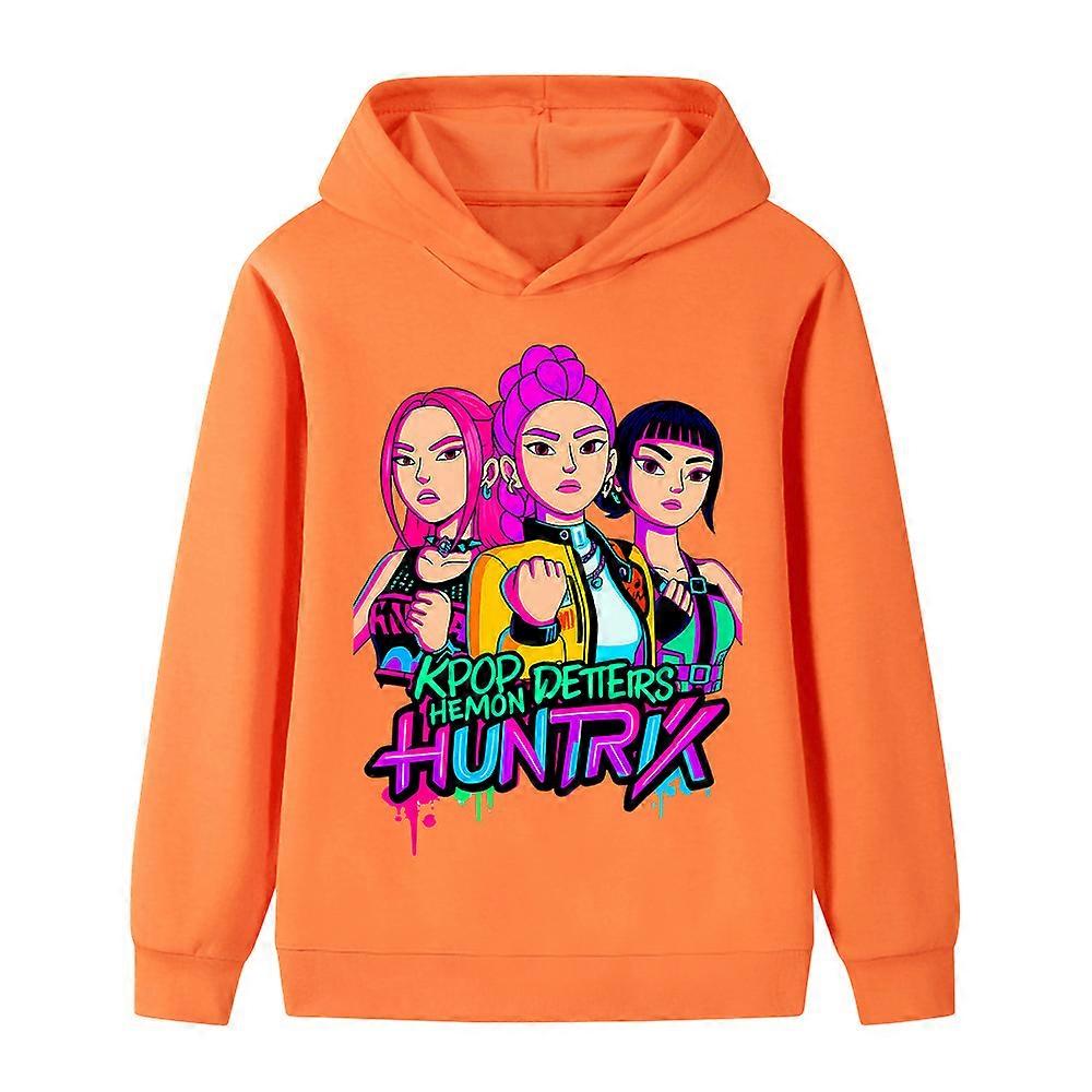 Orange- Witch Hunt Print Pattern Big Kids Boys And Girls Hooded Sweatshirt B1210