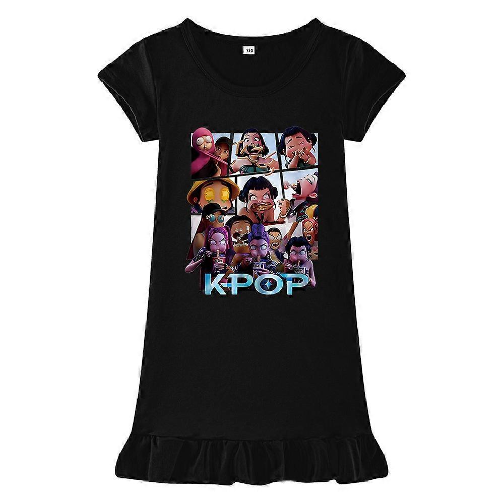 Black-The Best-Selling K-Pop Witch Hunt Printed Girls' Dress, Ice Silk Sleeping Dress M1237