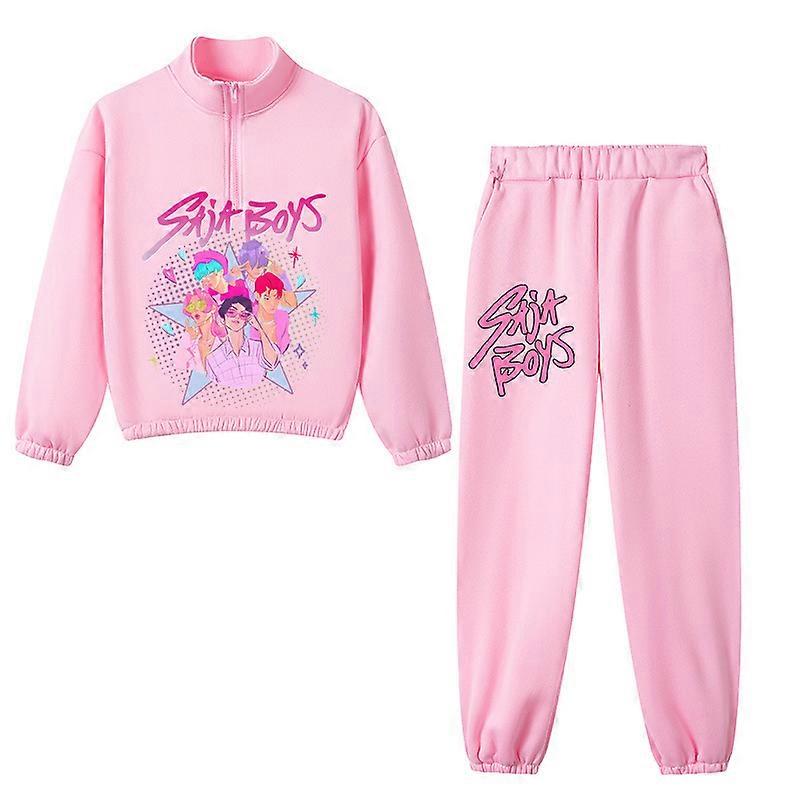 Pink- Witch Hunting Group Boys And Girls Turtleneck Half Zipper Sweater + Trousers Sports Fleece Casual Children Suit