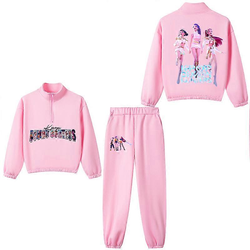 Pink- Witch Hunt Boys' And Girls' Stand-Up Collar Half-Zipper Hoodies + Long Pants Sportswear Fleece Casual Children's Sets