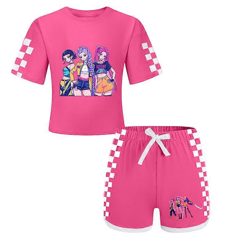 Flower Type 2-Rose Red- Witch Hunt Boys And Girls Children's T-Shirt + Shorts Printed Sports Pajamas Children's Set