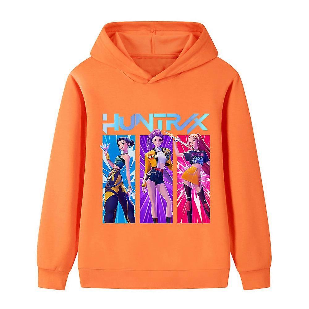 Orange- Witch Hunt Print Pattern Big Kids Boys And Girls Hooded Sweatshirt B1221