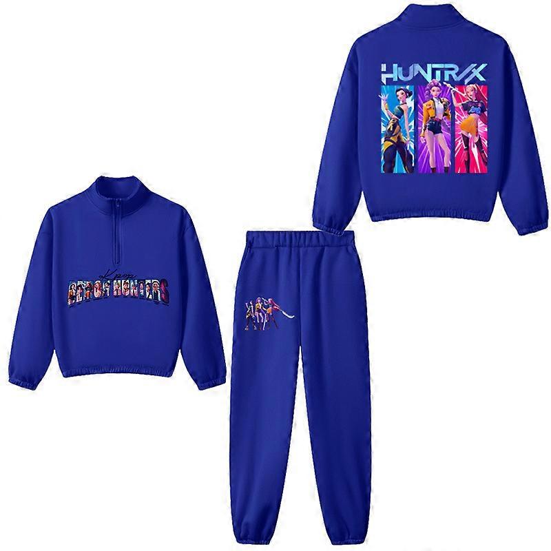 Blue- Witch Hunter Boys And Girls Set Collar Half-Zip Sweat Trousers Sports Fleece Casual Children's Suit