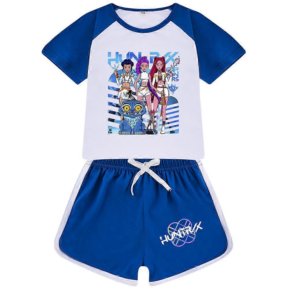 Blue-Hot-Selling Witch Hunt Printed Children's Short Home Wear Sportswear Set Qq1231