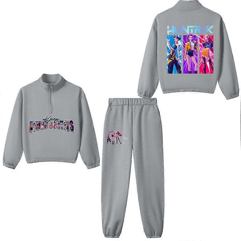 Gray- Witch Hunter Boys And Girls Set Collar Half-Zip Sweat Trousers Sports Fleece Casual Children's Suit