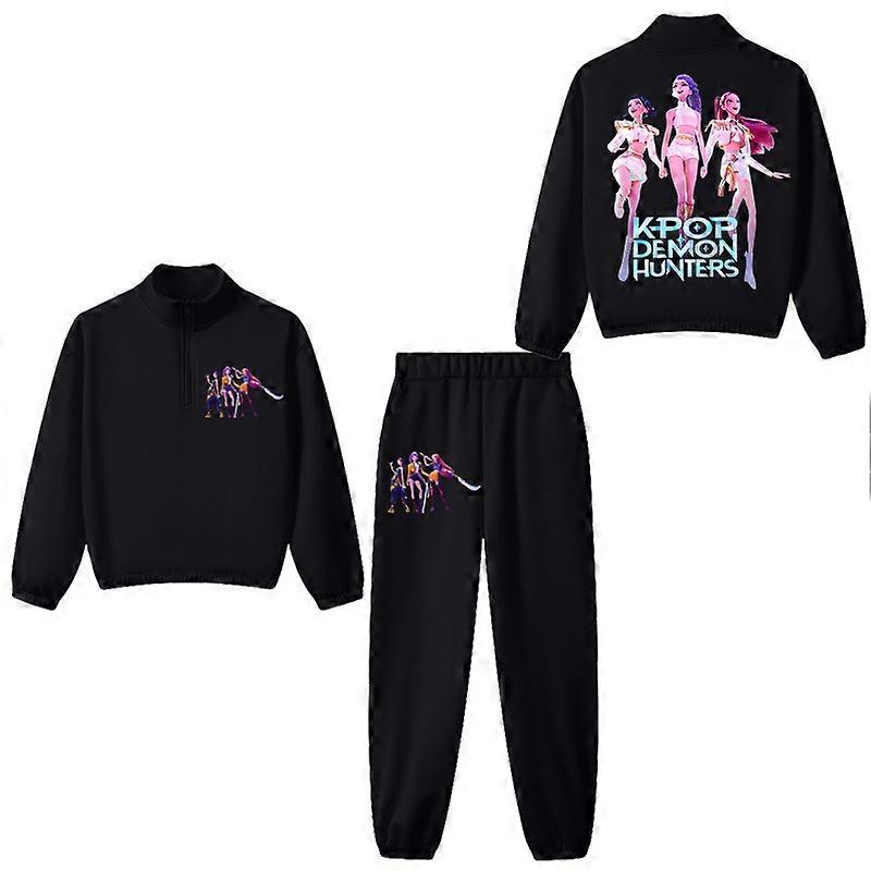 Black- Witch Hunt Boys' And Girls' Stand-Up Collar Half-Zipper Hoodies + Long Pants Sportswear Fleece Casual Children's Sets