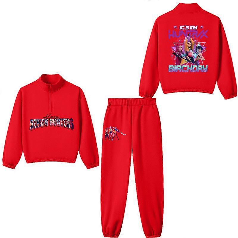 Red- Witch Hunter Boys And Girls Set Collar Half-Zip Sweat Trousers Sports Fleece Casual Children's Suit