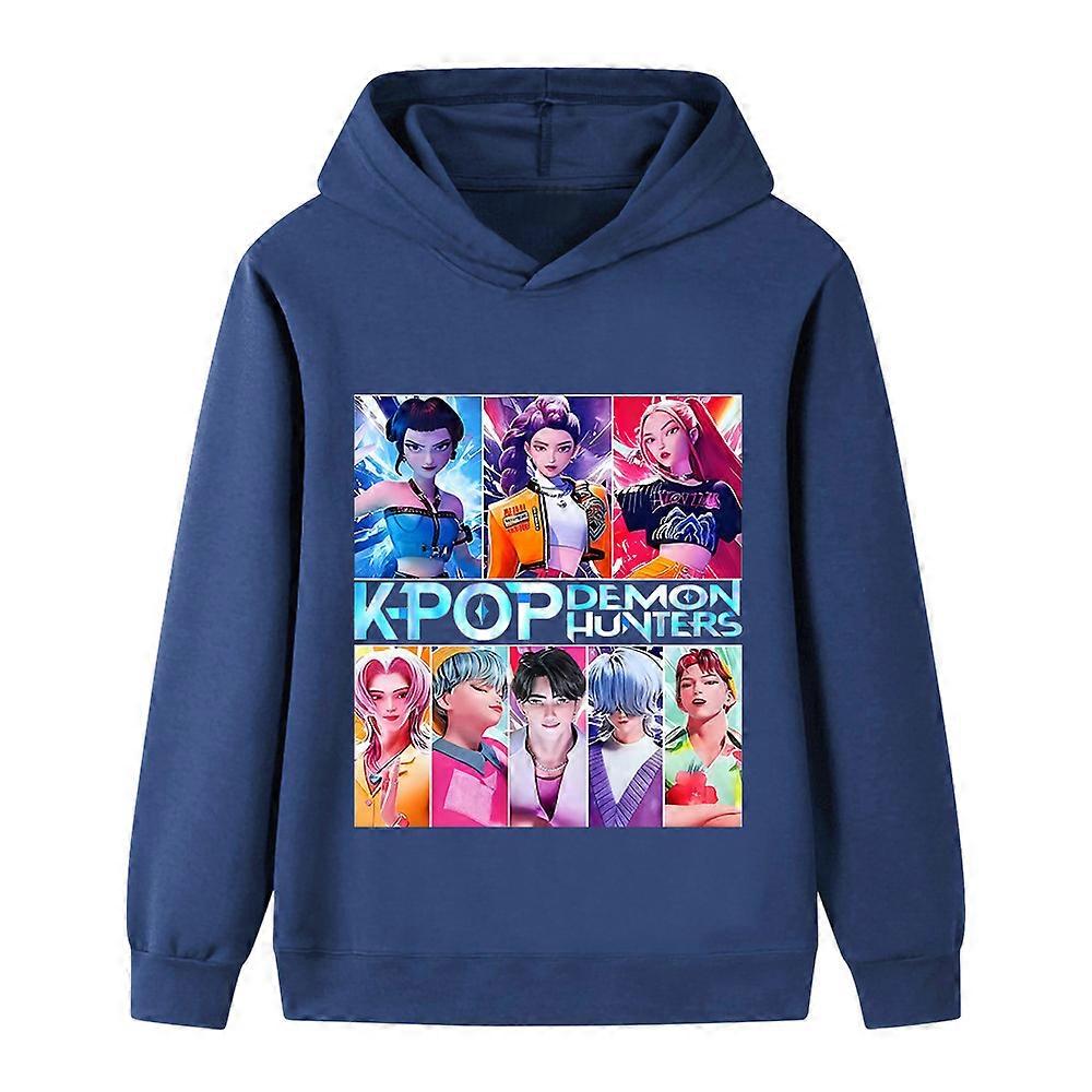 Navy Blue- Witch Hunt Print Pattern Big Kids Boys And Girls Hoodies B1230