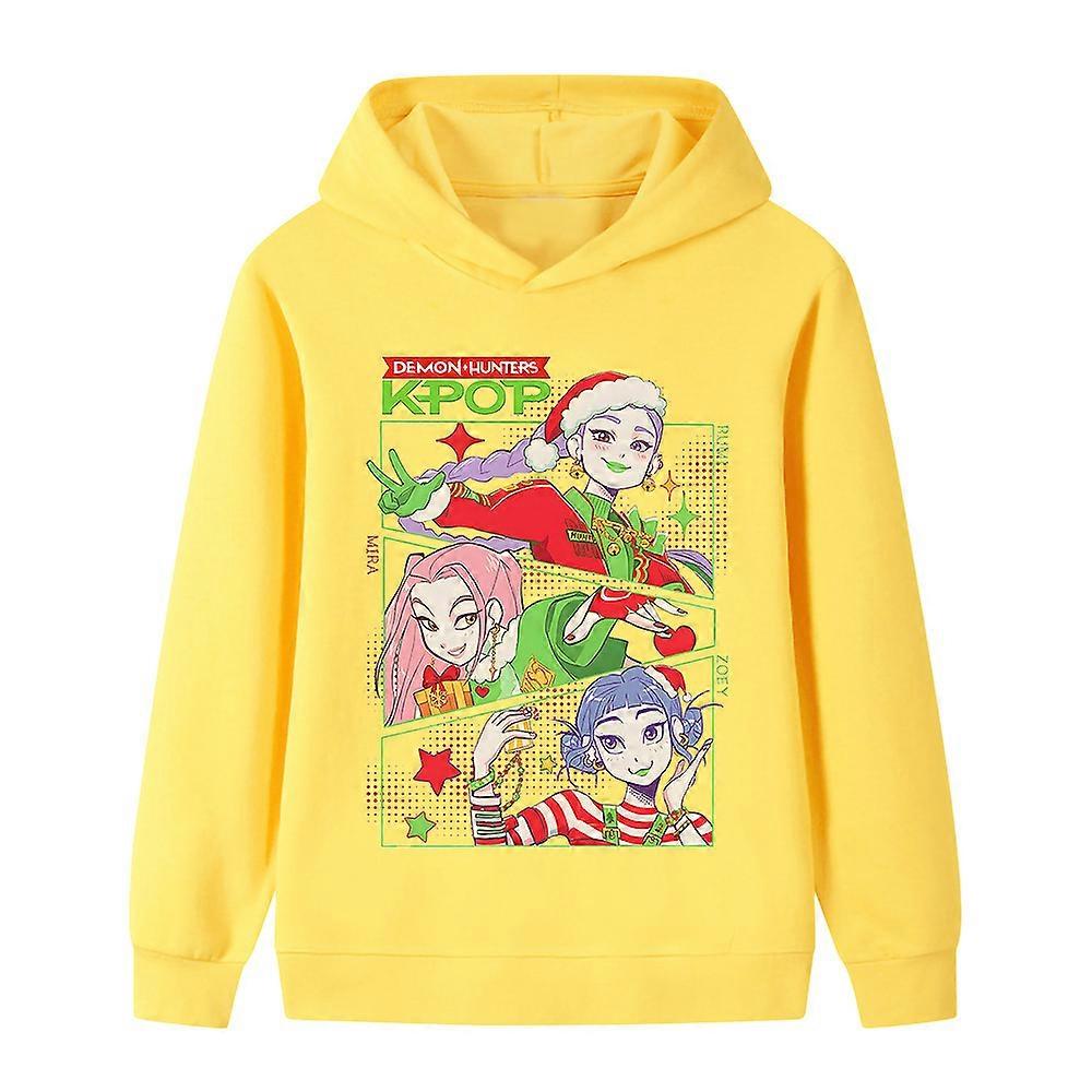 Yellow- Witch Hunting Group Printing Pattern Medium And Large Children Boys And Girls Hoodie Sweater B12 63