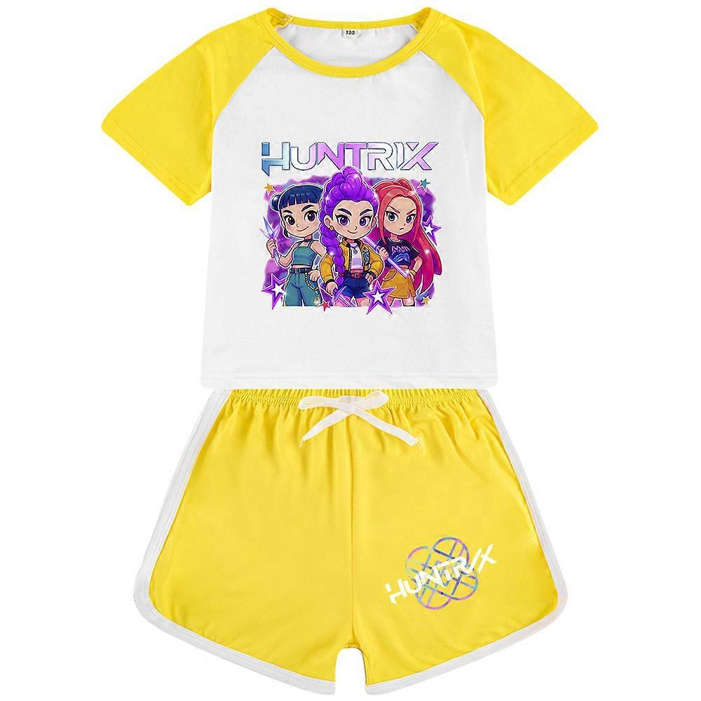 Yellow-Hot Selling Witch Hunting Group Printing For Children And Kids Short Homewear Sports Suit Qq1200