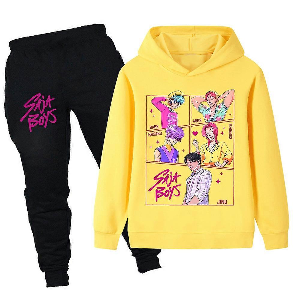 Yellow- Witch Hunt Printed Children's Set, Kids' Hoodie And Sweatshirt Set Pb1217