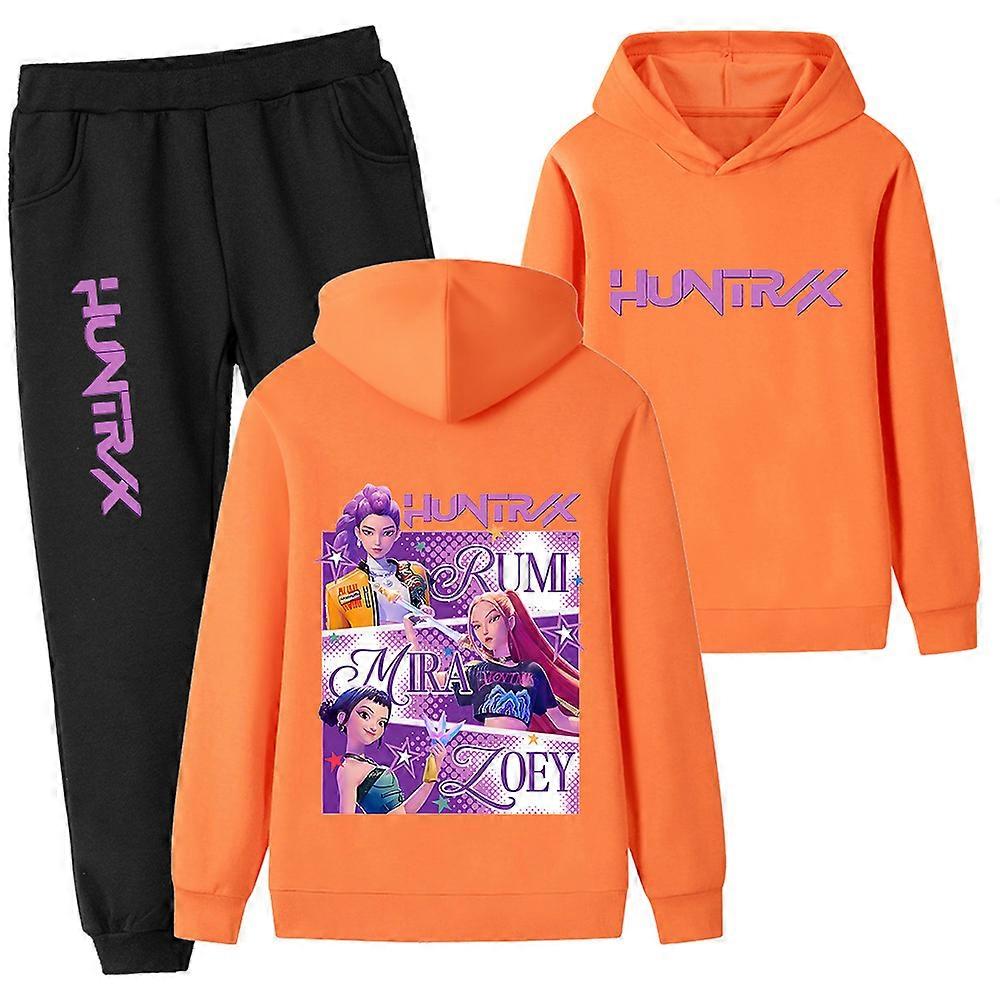 Orange- Witch Hunt Printed Children's Set, Kids' Hoodie And Sweatshirt Set Pb1206-2
