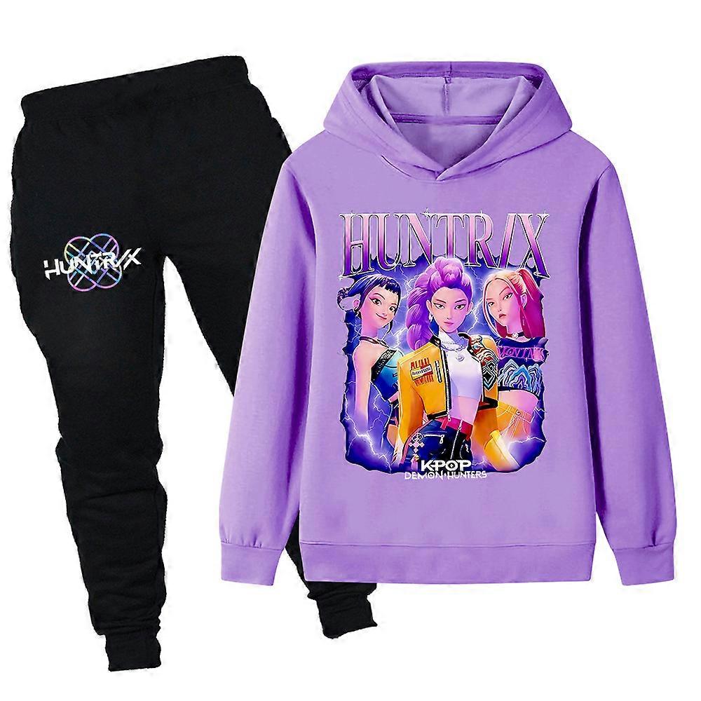 Purple- Witch Hunt Printed Children's Set, Kids' Hoodie And Sweatshirt Set Pb1228