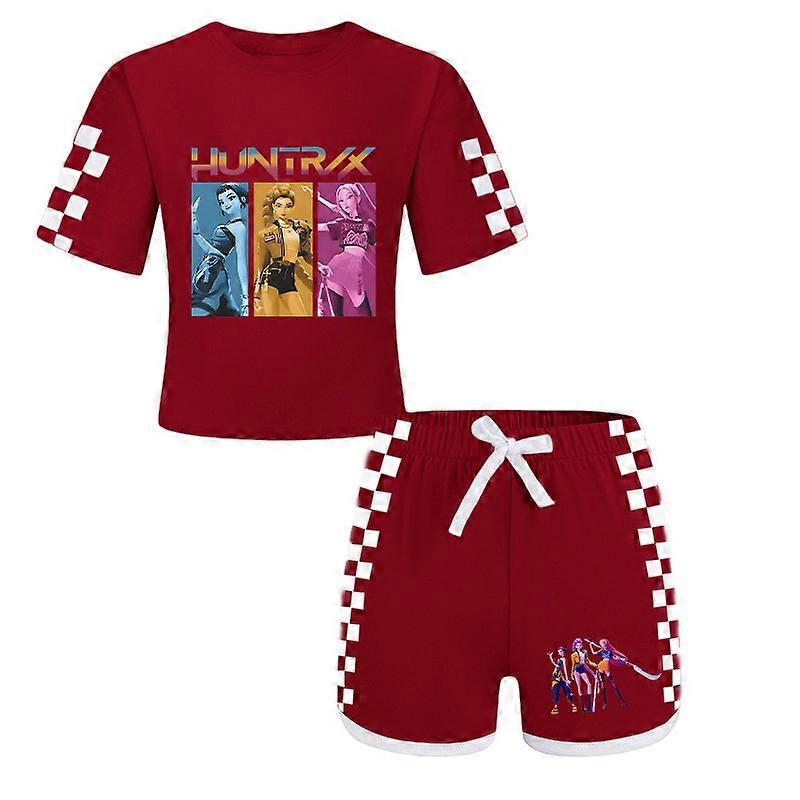 Flower Type 2-Dark Red- Witch Hunt Boys And Girls Children's T-Shirt + Shorts Printed Sports Pajamas Children's Set