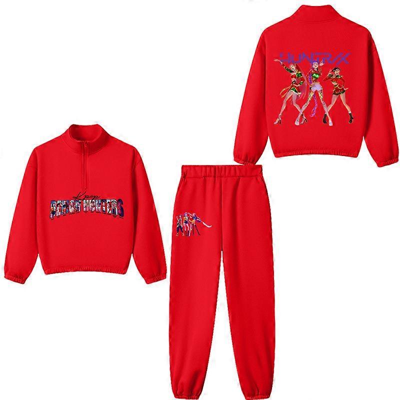 Red- Witch Hunt Boys' And Girls' Stand-Up Collar Half-Zipper Hoodies + Long Pants Sportswear Fleece Casual Children's Sets