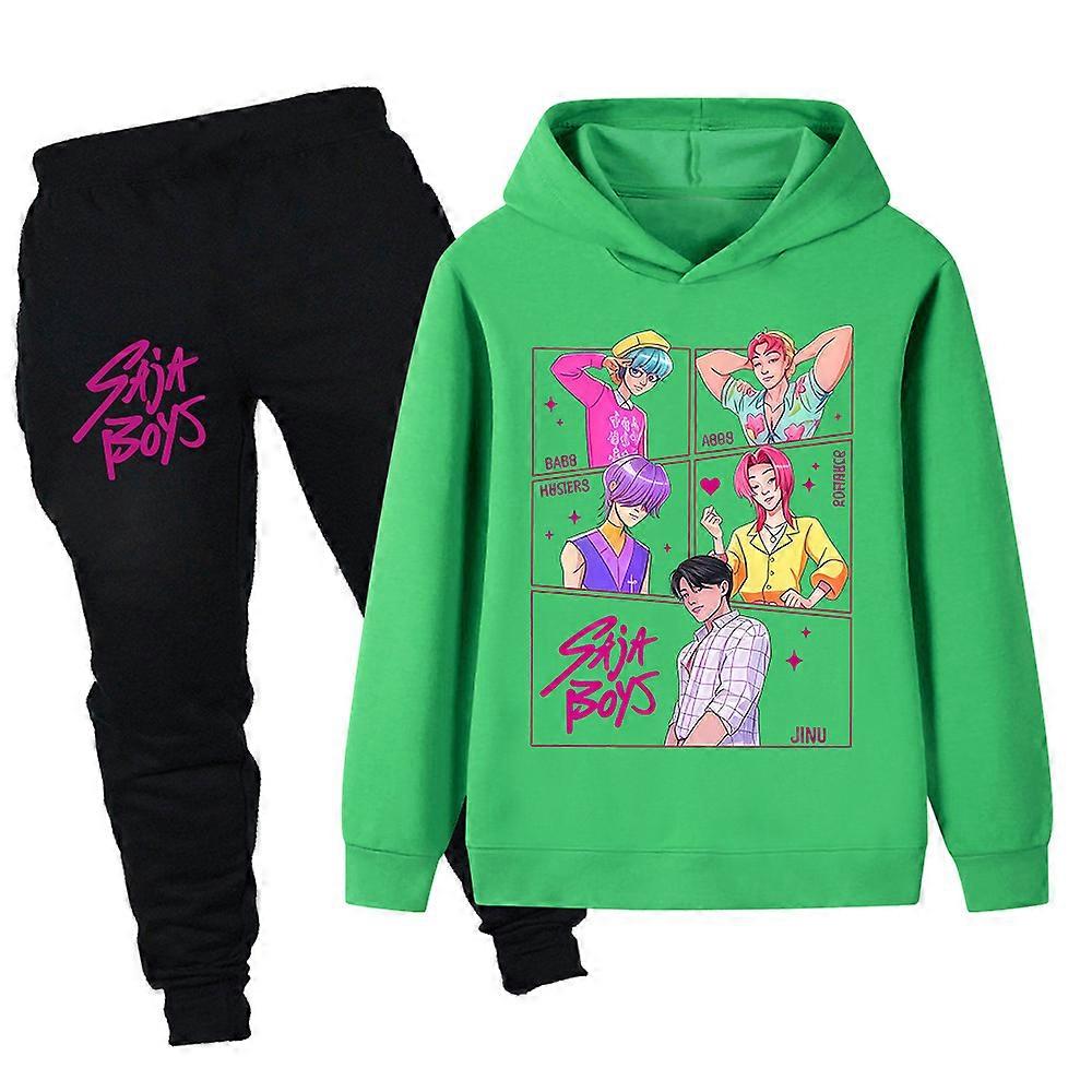 Green- Witch Hunt Printed Children's Set, Kids' Hoodie And Sweatshirt Set Pb1217