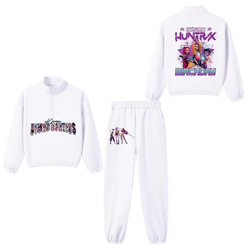 White- Witch Hunter Boys And Girls Set Collar Half-Zip Sweat Trousers Sports Fleece Casual Children's Suit