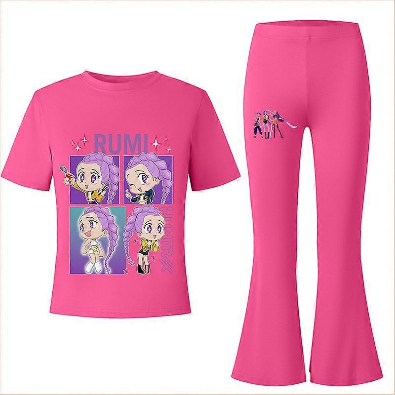 Flower Type 2-Rose Red- Witch Hunter's Big Kids Summer Short-Sleeved T-Shirt + Flared Long Pants Fashionable Casual Set