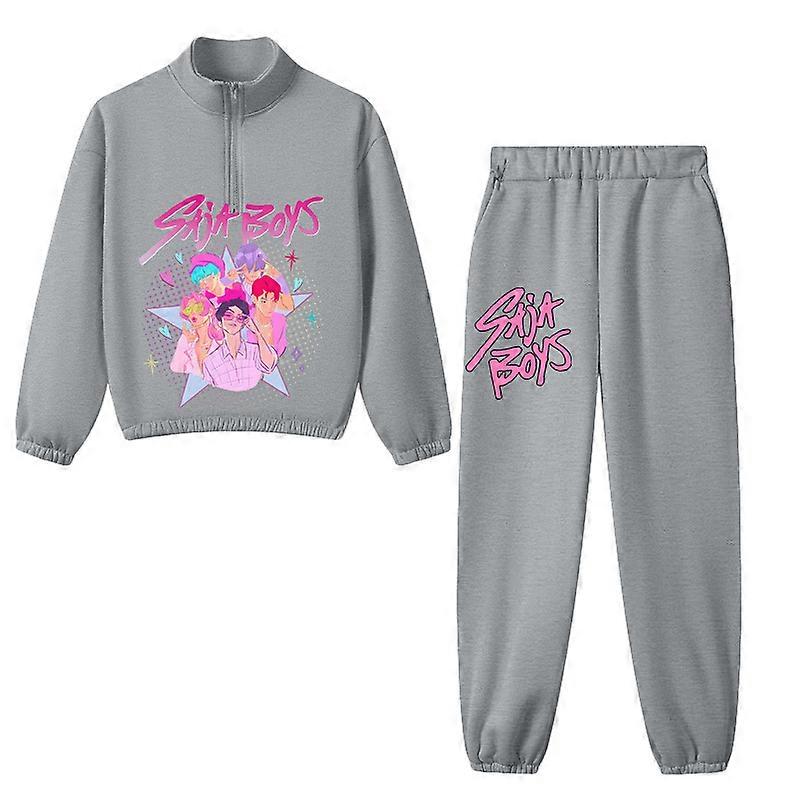 Gray- Witch Hunting Group Boys And Girls Turtleneck Half Zipper Sweater + Trousers Sports Fleece Casual Children Suit