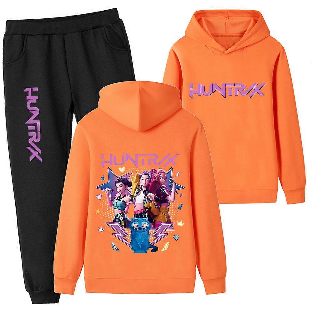 Orange- Witch Hunt Printed Children's Set, Kids' Hoodie And Sweatshirt Set Pb1216-2