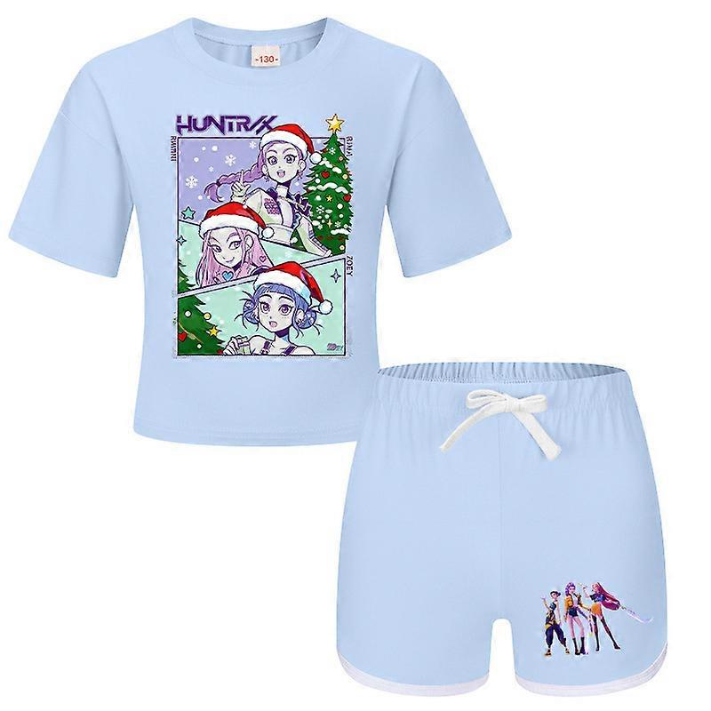 Sky Blue- Witch Hunt Boys And Girls Children's T-Shirt + Shorts Printed Sports Pajamas Children's Set
