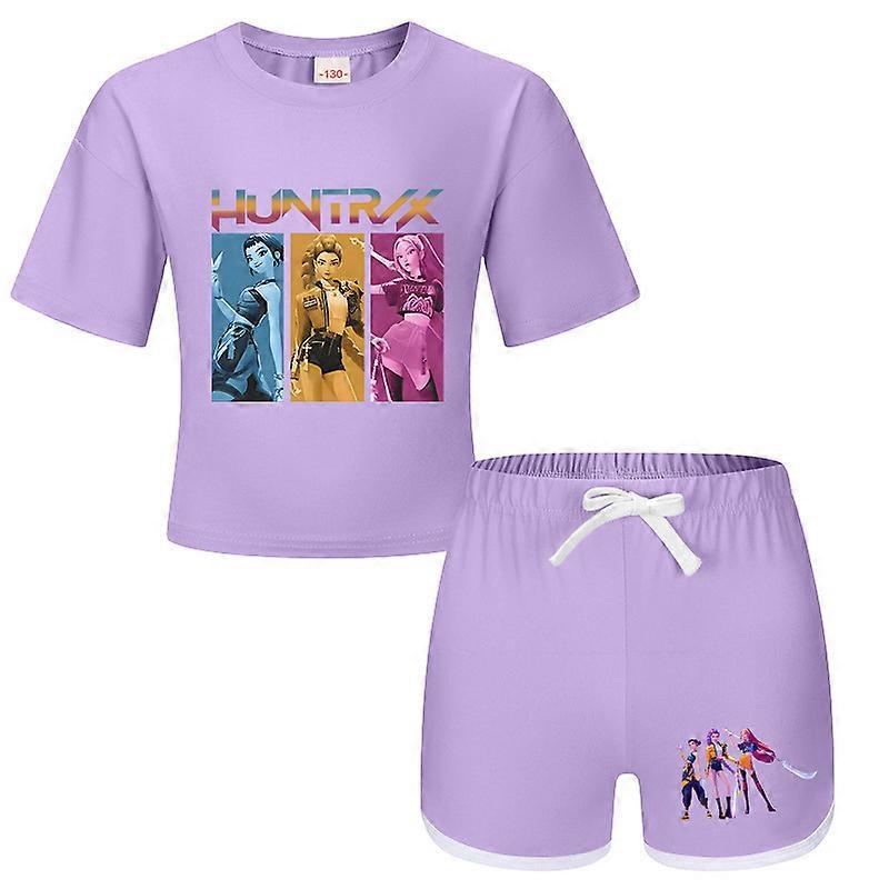 Purple- Witch Hunt Boys And Girls Children's T-Shirt + Shorts Printed Sports Pajamas Children's Set