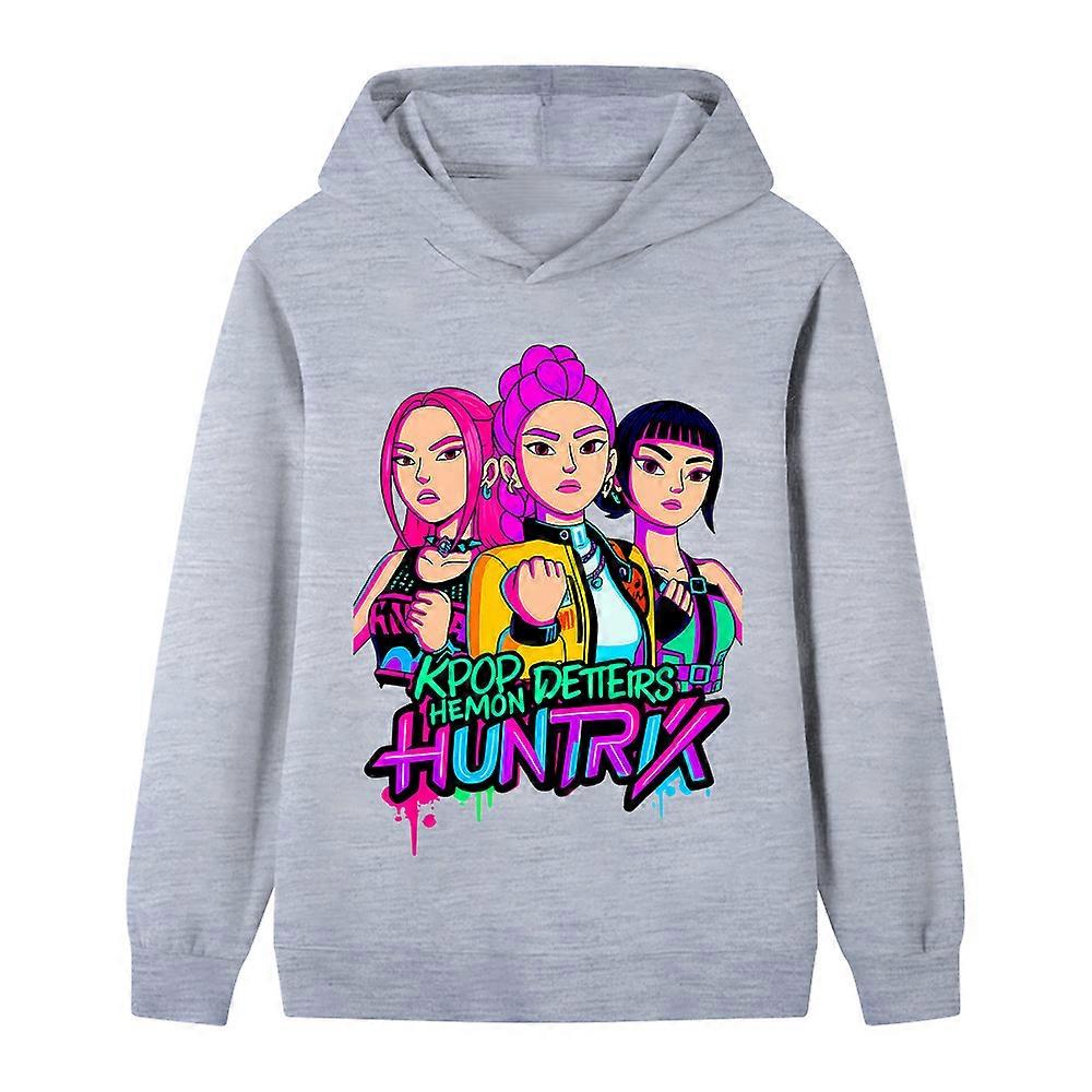 Grey- Witch Hunt Print Pattern Big Kids Boys And Girls Hooded Sweatshirt B1210