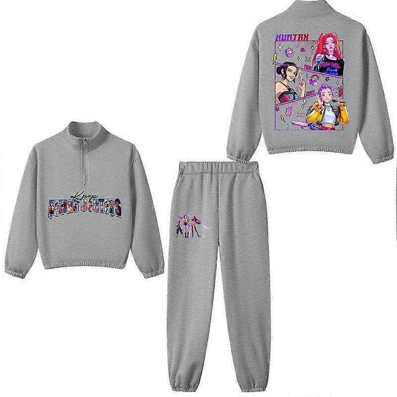 Grey- Witch Hunter Boys And Girls Set Collar Half-Zip Sweat Trousers Sports Fleece Casual Children's Suit